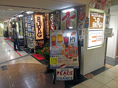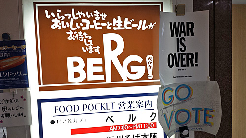 看板の管理権限がベルクの側にあるのだとしたら、看板のデザインの中に「WAR IS OVER!」の表現を取り込んでしまえば、どこからも文句の付けようがありませんね。