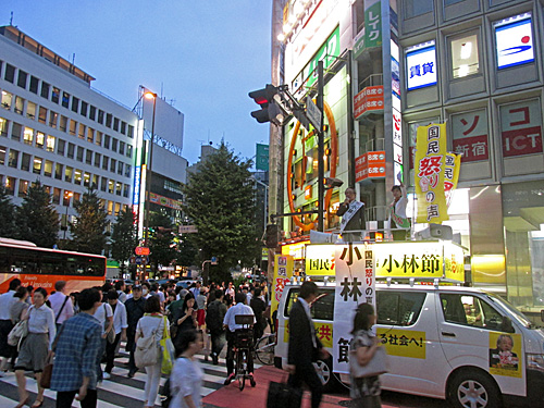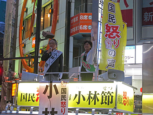 午後7時頃、西新宿一丁目交差点で「国民怒りの声」が街頭演説してました。