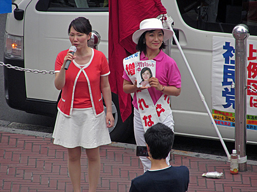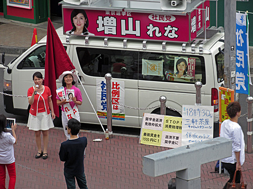 午後3時頃、新宿駅東南口で社民党の増山れな候補が街頭演説してました。