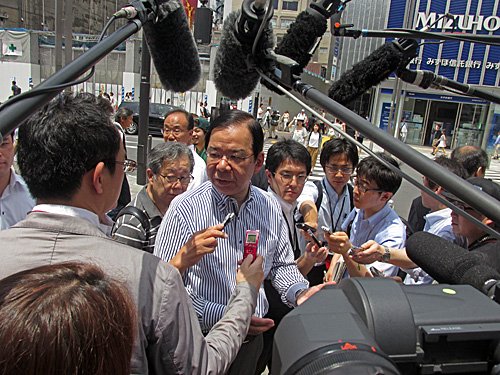 午後12時半過ぎ、近くでお茶を飲んで戻ってきたら、志位和夫委員長がカメラに囲まれてました。