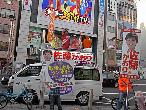 午後6時過ぎ、新宿東口、佐藤かおり候補の街頭演説です。