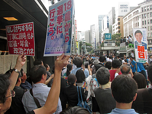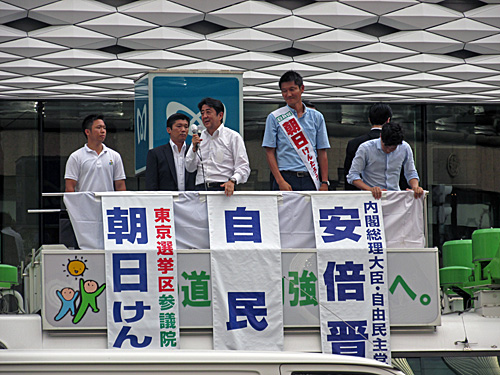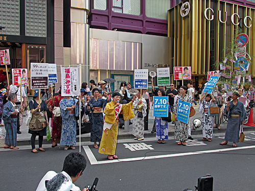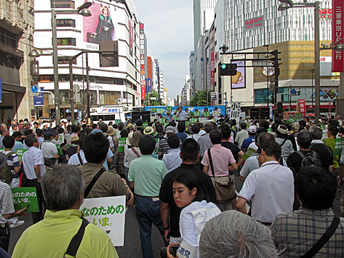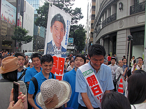 以上4枚、銀座四丁目交差点、自民党・朝日けんたろう候補の街頭演説です。