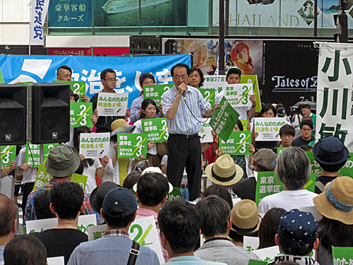 以上2枚、新宿伊勢丹前、民進党・小川敏夫候補の街頭演説です。