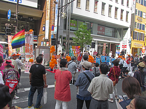 以上2枚、新宿高野前、社民党・福島みずほ候補の街頭演説です。