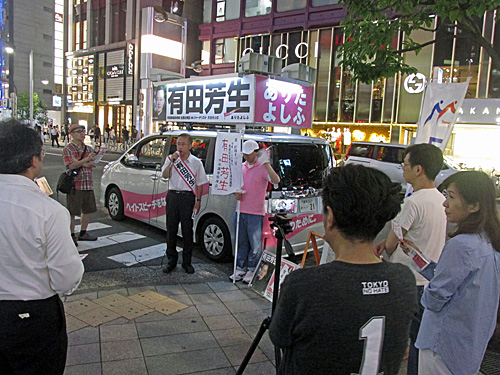 新宿東口、民進党・有田芳生候補の街頭演説です。