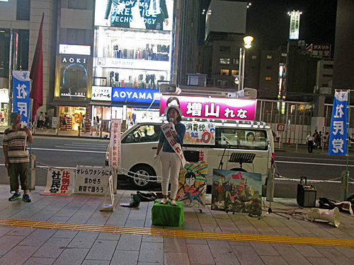 新宿東口、社民党・増山れな候補の街頭演説です。