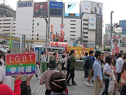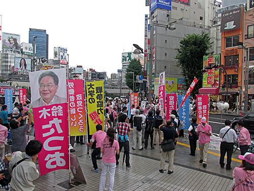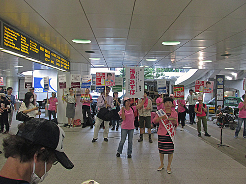 新宿西口、社民党・福島みずほ候補の街頭演説です。