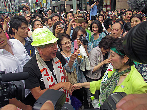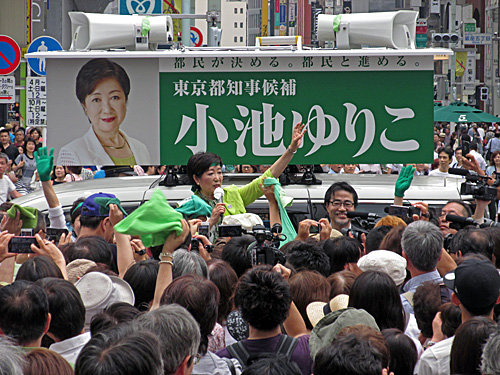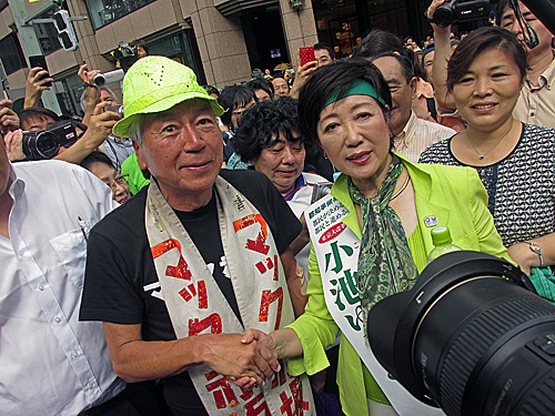 小池ゆりこ候補の街頭演説ウォッチングに行ったら、マック赤坂候補が先に来て演説してました。