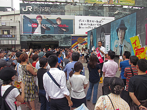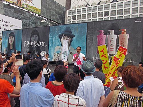 以上2枚、渋谷ハチ公前、上杉隆候補の街頭演説です。