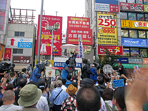 夕方5時頃、中野駅北口、鳥越俊太郎候補の街頭演説です。