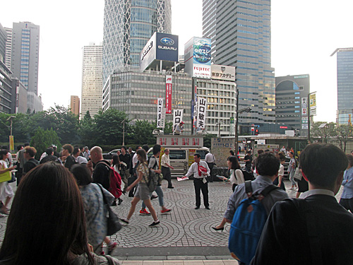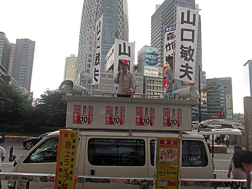 新宿駅西口、山口敏夫候補の街頭演説です。