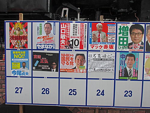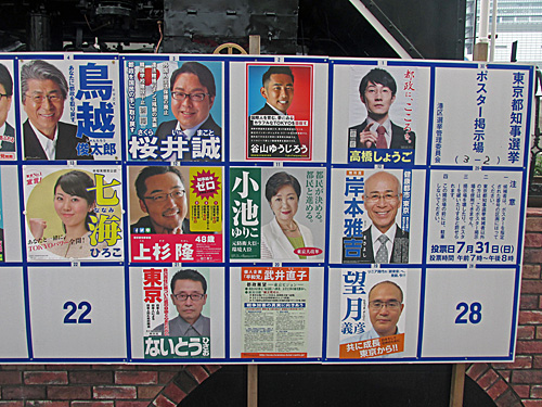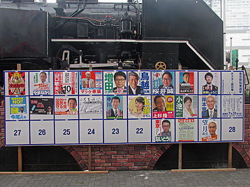 昼12時頃、新橋駅SL広場前 都知事選ポスター掲示場です。