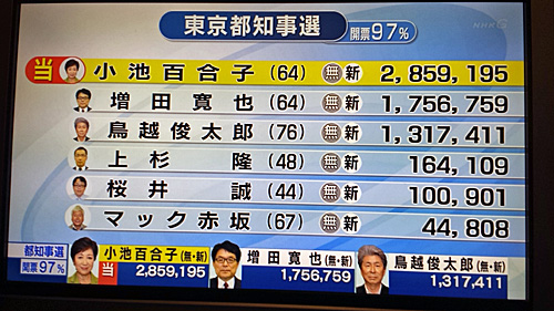 鳥越俊太郎、さすがに100万票割れはありませんでしたが、代わりに(?)桜井誠が10万票を超えて5位に食い込んでしまいました。
