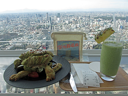 52階の窓の外に富士山を遠望しながら、ガメラバーガーとガメラスムージーをいただきました。