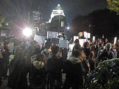 今夜は、経産省前→国会前→首相官邸前とまわりました。