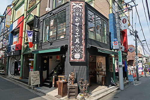 原宿のかすう工房にカメの帯留めを売ってると聞いて見に行ったら、(解像度が低すぎてわかりにくいかもしれませんが)看板が鶴と亀でした。
