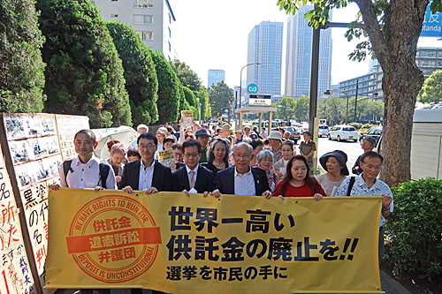 今日は「供託金違憲訴訟」第五回裁判、宇都宮健児弁護団長を先頭に東京地裁前アピール&入廷行動です。