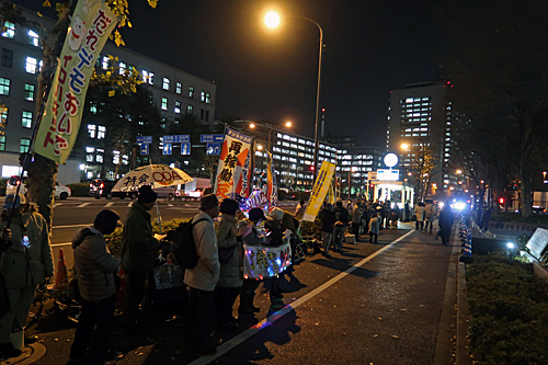 今夜は、経産省前→国会前→首相官邸前→首相官邸「裏」とまわりました。