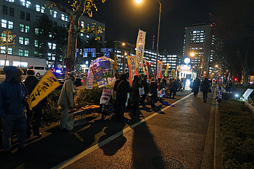 今夜は、経産省前→国会前→首相官邸前→首相官邸「裏」とまわりました。