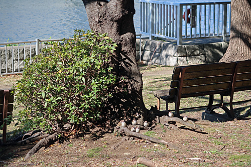 朝、きんちゃんと散歩をしてたら樹の根元で雀たちが憩ってました。