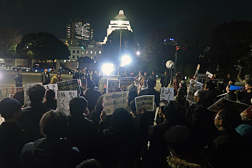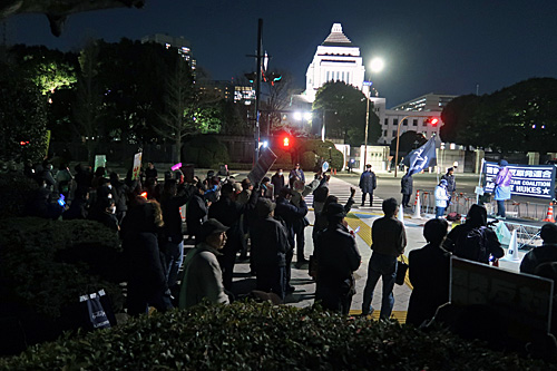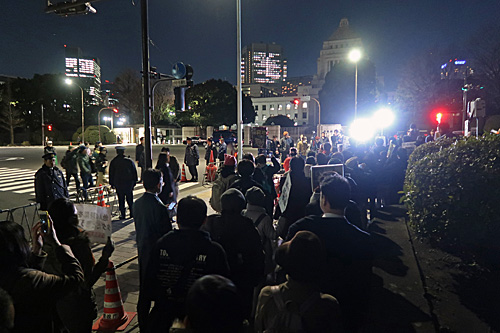 今夜は、経産省前→国会前→首相官邸前→国会前とまわりました。