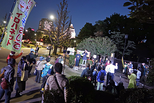 今夜は、経産省前→国会前→首相官邸前→首相官邸「裏」とまわりました。