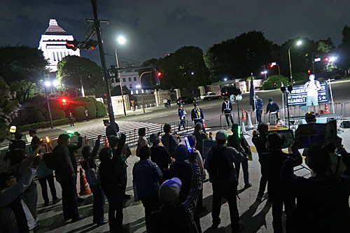 今夜は、国会前→首相官邸前とまわりました。
