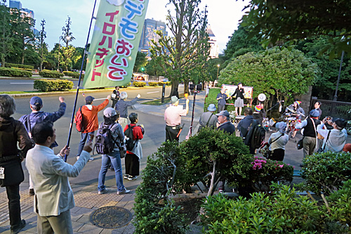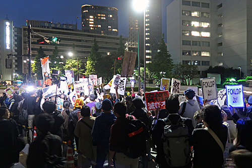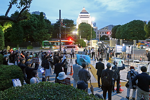 今夜は、財務省前→経産省前→国会前→自民党本部前とまわりました。