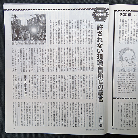 p.27の 高田健さんの記事(「連載 STOP! 9条改憲 14 許されない現職自衛官の暴言」)に僕の撮った写真が使われてます。
