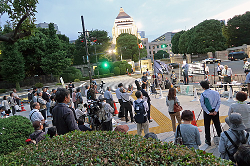 今夜は、経産省前→国会前→首相官邸前とまわりました。
