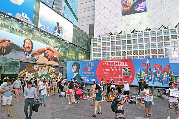 「内村五輪宣言!」の巨大看板があって、その前でアニマルライツの人たちと西日本豪雨支援募金の人たちがアピールしてました。