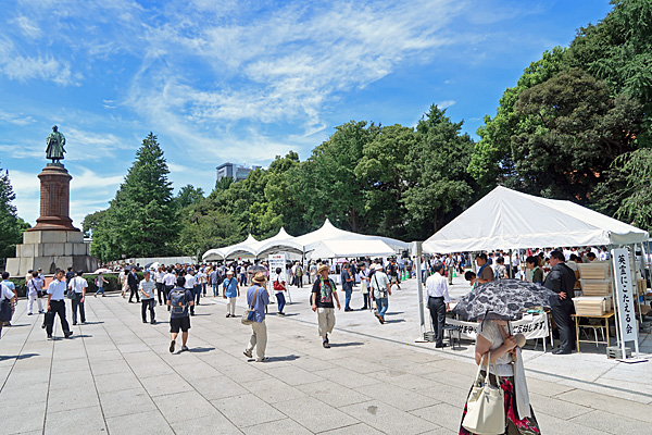 陽射しを避けるためか、参道の導線を確保するためか、今年は会場が木立の近くに移動してました。