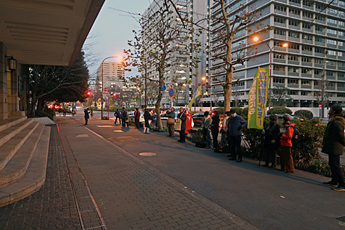 文部科学省前、朝鮮学校への「高校無償化」適用を求める「金曜行動」です。