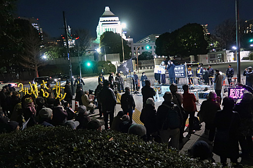 今夜は、経産省前→国会前→首相官邸前とまわりました。