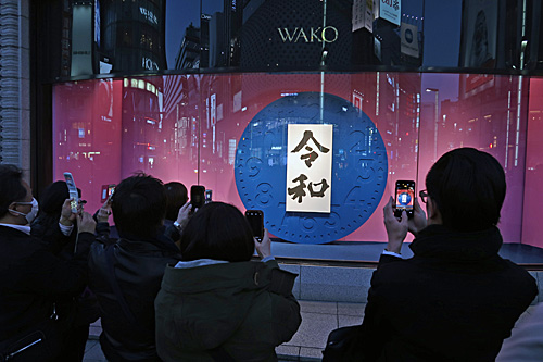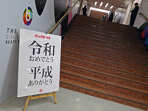 19時半過ぎに再びここを通ったときにはすでに「令和」は撤去されてて、次のディスプレイの準備を始めてました。