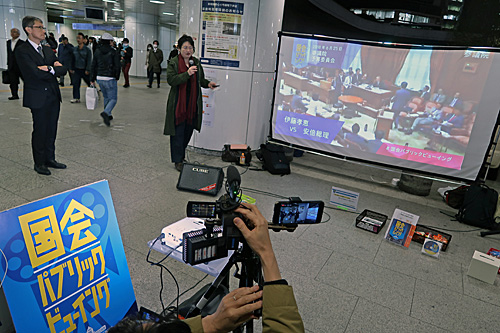新宿西口地下広場で国会パブリックビューイングをやってました。