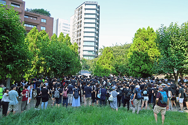 香港警察の暴力行為に抗議する緊急集会