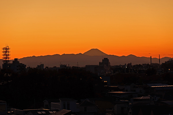 富士山と夕焼けと月と惑星 新宿西口意思表示