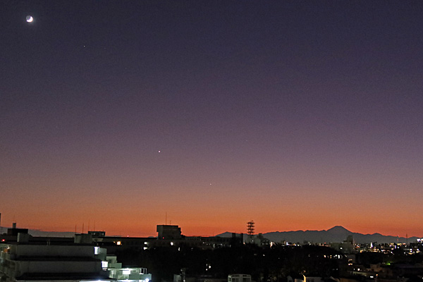 以上2枚、富士山と夕焼けと月と惑星(木星だか金星だか土星だか)。