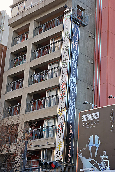 渡邉修孝さんのSNSで東中野駅前のPAO COMPOUNDの懸垂幕が新調されたのを知り、昼過ぎ、見に行きました。