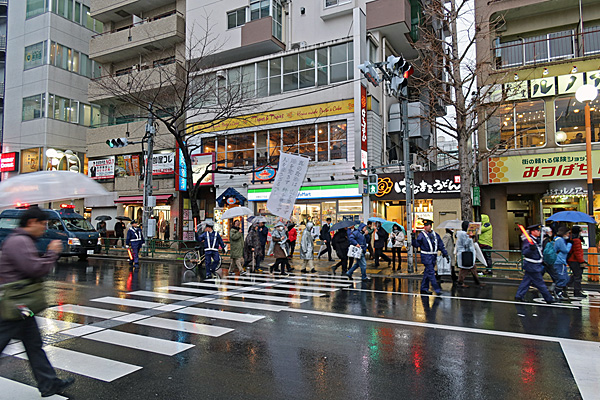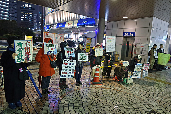 とありましたが、雨だし寒いし、たぶん早めに引き揚げてもういないだろう、と思って17時10分頃、中野のデモから戻ってきたら、まだやってました。