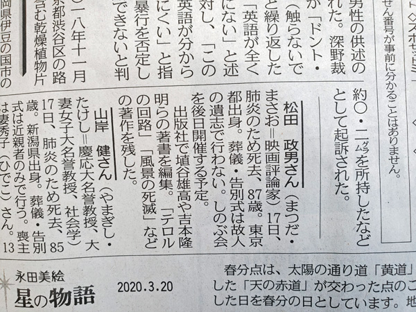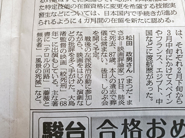<パレスティナに献花を!>の仲間である松田政男さんが、3月17日、87歳で亡くなられたそうです。