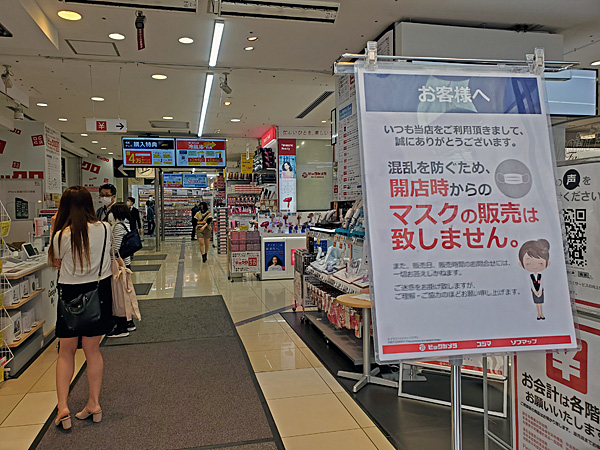 店頭に「開店時からのマスクの販売は致しません。」という掲示がありました。