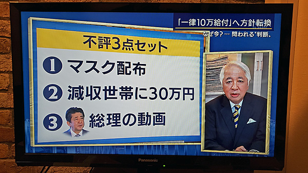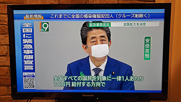 全国に緊急事態宣言、一律1人あたり10万円給付。