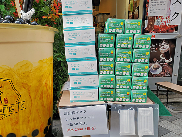 数日前から「マスクバブル崩壊」が言われてましたが、新宿でも不織布マスクが税込みで2.000円に。