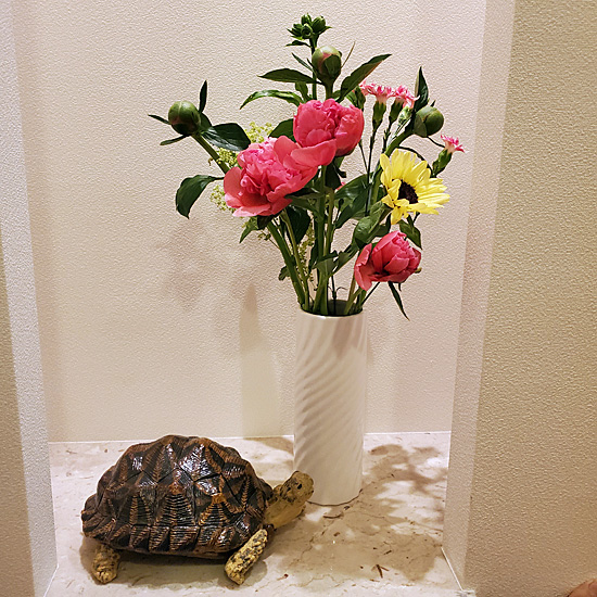 昼にカメちゃんの写真を撮りそこねたので、置物ですが。