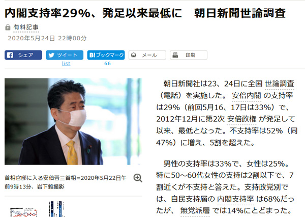 5/24 朝日新聞世論調査 29%