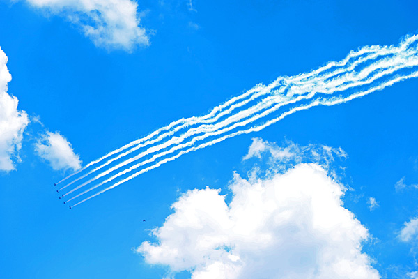 12時40分頃から13時頃、ブルーインパルスが飛びました。