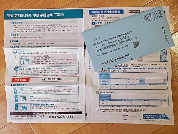 特別定額給付金申請書が届いてました。