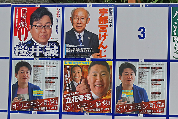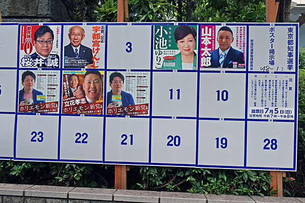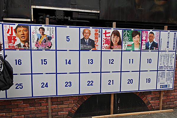 午後5時半過ぎ、新橋駅前ポスター掲示場です。